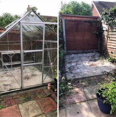 We provide a professional green house dismantle and removal service. Old green houses whether made or metal or wood can become unstable and dangerous, especially with broken panes of glass. This is often due to old age, and quite often panes of glass become broken and damaged through storms or falling debris. We will safely dismantle and remove your greenhouse, along with any contents, shelving, old pots etc. We are Fully Licensed with the environment agency.